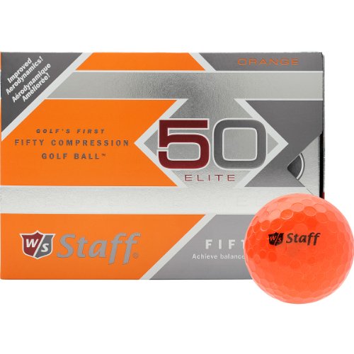 Wilson Staff Fifty Elite Orange Golf Balls The Wilson Staff Fifty Elite Orange Golf Ball launched an entirely new performance expectation into the two-piece distance ball category. As the original and only 50-compression golf ball, Fifty Elite offers unmatched feel in a ball that is as long as any on the market. Today, Fifty Elite is hands down the best value in premium golf balls, offering performance similar to balls twice the price. Additional features: Compression: 50 Two-piece Ionomer cover 302 dimples An aggressive core is offset by a responsive cover Explosive distance is coupled with soft feel Low driver spin is offset by high greenside spin Long carry, quick stop