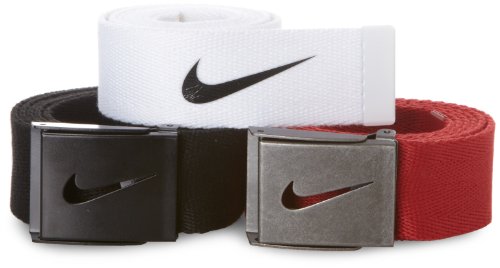 Nike Golf Mens Tech Essentials 3 Pack Belt Gift Set, Black/White/Red, One Size description